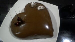 Démouler, le déposer sur une grille avec un plat en dessous et napper avec le glaçage Gianduja ramené à une température de 30-32°C.