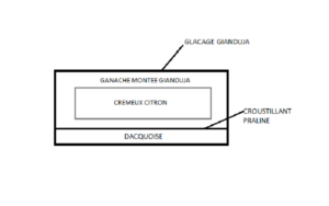 Laisser prendre un moment au frigo. Puis pocher le crémeux citron au centre, sans aller jusqu’aux bords. Laisser prendre au frigo. Recouvrir d’un peu de ganache montée au Gianduja.